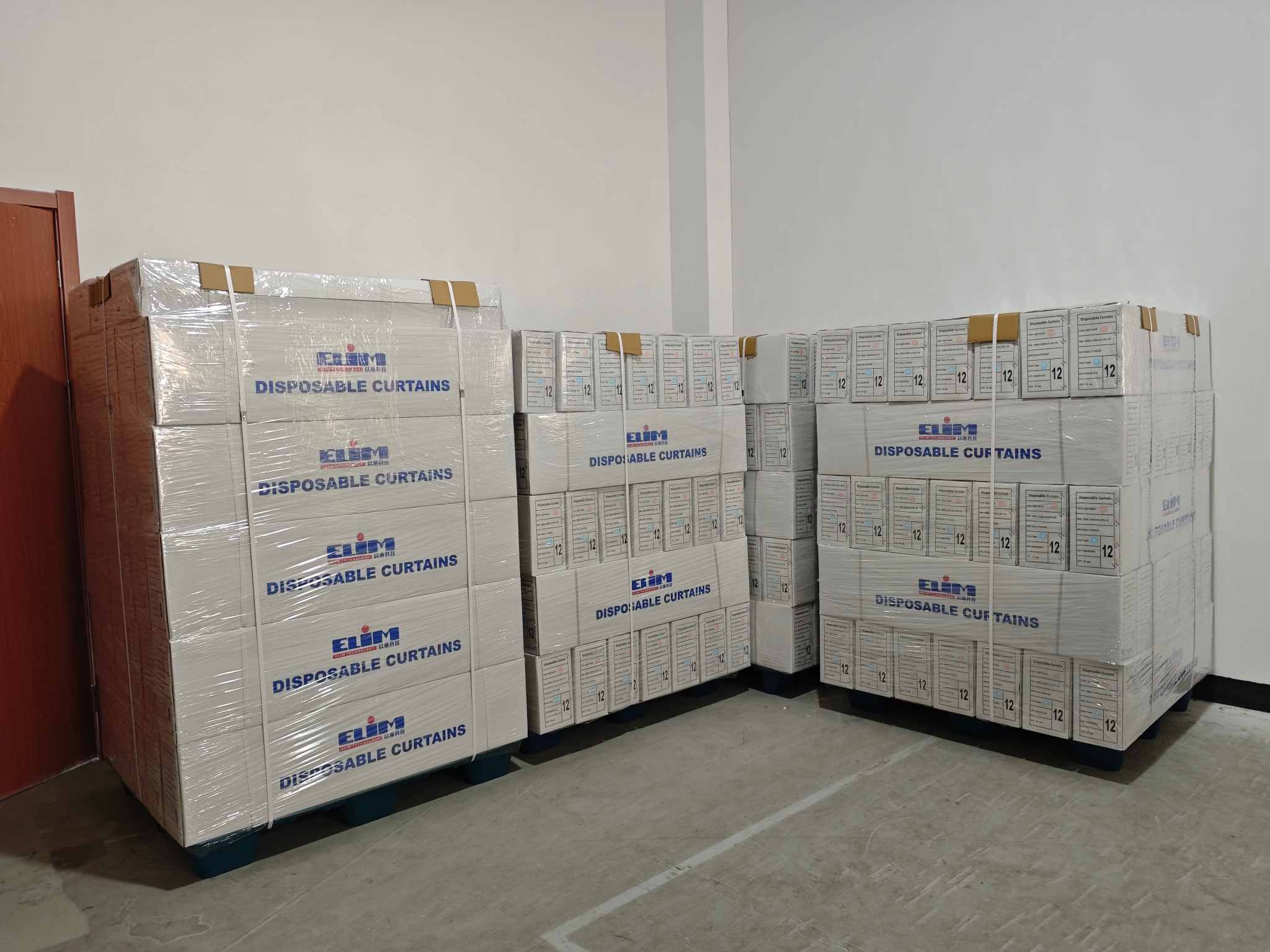 Processen begyndte i ELIMs topmoderne lager, hvor stakke af ELIM engangsgardiner blev læsset omhyggeligt på paller. Disse paller, pakket forsvarligt ind for at forhindre enhver skade, blev derefter flyttet ved hjælp af gaffeltrucks og palledonkrafte. ELIM engangsgardinerne blev derefter transporteret via containervogne til deres destination. Hele logistikoperationen var et vidnesbyrd om ELIMs effektive supply chain management og opmærksomhed på detaljer.